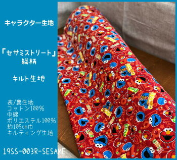キルティングキャラクター生地/『セサミストリート』総柄のキルト生地/男の子/女の子/入園入学/レッスンバッグ/シューズバッグ/巾着袋/SESAME STREET/エルモ/クッキーモンスター/N20